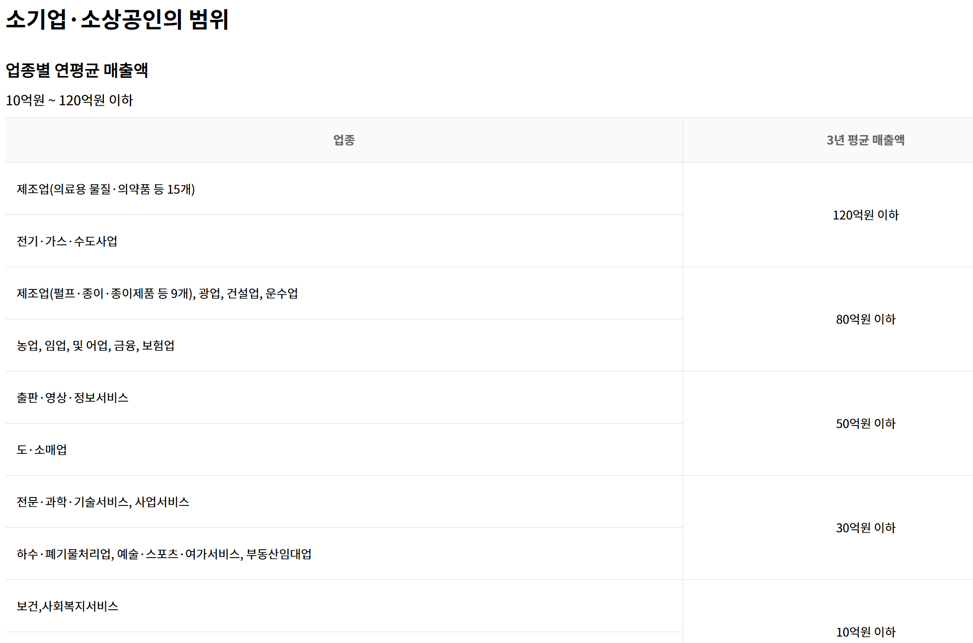 - 개인사업자 및 법인대표: 업종별 매출 기준 이하일 것
