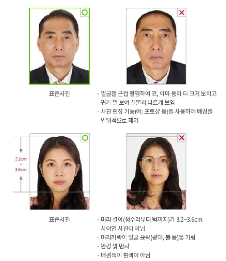 - 귀, 이마가 보여야 하며 무표정이어야 함