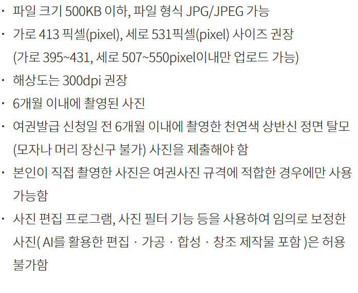 💡 사진은 스마트폰 셀카나 증명사진 부스보다 사진관에서 ‘여권사진’으로 지정해 촬영하는 것을 추천합니다. 규격 미달로 반려되는 경우가 많거든요.