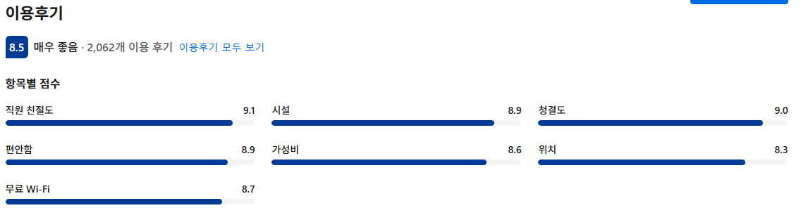 - 후기 평점 8.0 이상, 리뷰 수 2,000개 이상 숙소 우선 선택
