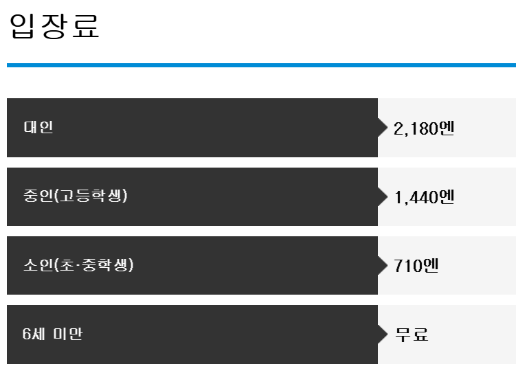 - 입장료: 성인 2,180엔