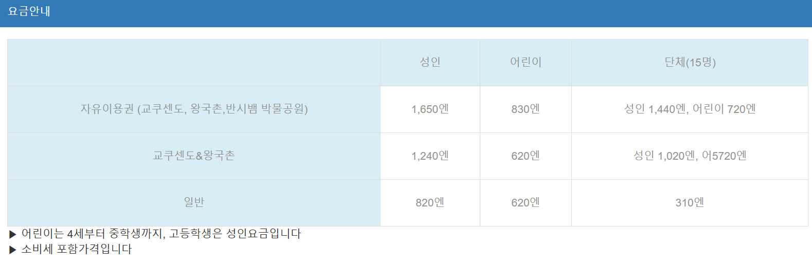 - 입장료: 성인 1,650엔