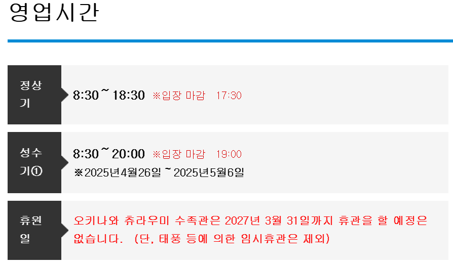 - 운영시간: 08:30~18:30 (입장 마감 17:30)